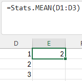 =Stats.MEAN(A1:A5)